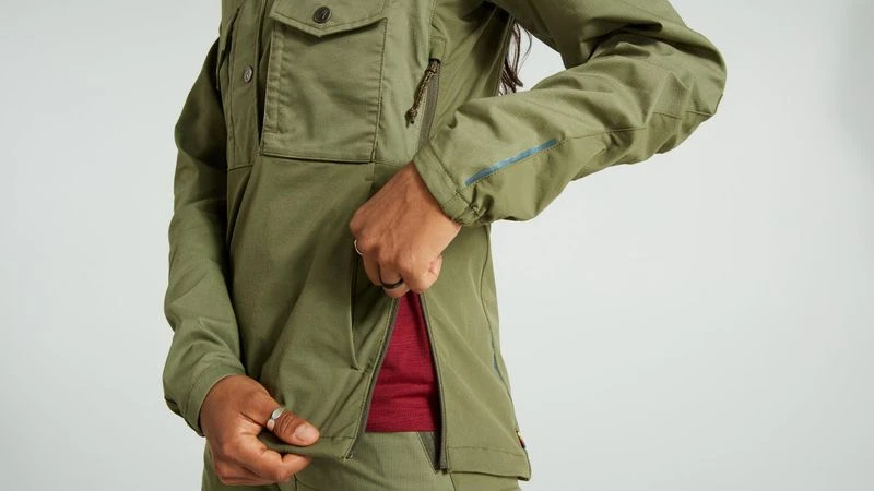 Fjällräven’s classic Räven jacket with Specialized’s on-bike-fit makes this the perfect jacket for both biking and hiking adventures. Features a torso in G-1000 Lite fabric. Four-way stretch on the back and lower sections provide wind resistance where it’s most needed, as well as greater freedom of movement. Reflective details on the articulated, engineered sleeves have been optimized for bike riding. Two-way zippered ventilation openings in the sides.