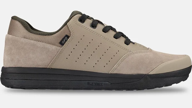 If you’re looking for a versatile MTB shoe that can transition from hot laps in the park to cold beers at the base without missing a step, then look no further. The 2FO Roost Flat brings a casual, relaxed vibe with all the right DNA to get sendy on the bike. It combines a durable leather and textile upper, cushioned EVA foam midsole and relaxed fit last that can stand up to the rigors of daily trail use without sacrificing off-the-bike comfort and style.